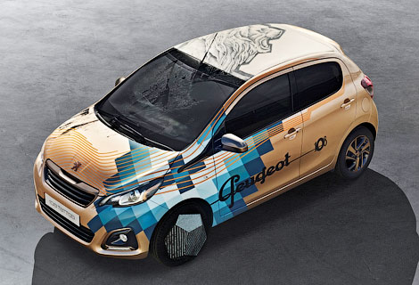 Автомобиль Peugeot 108 обтянули кожей с татуировками